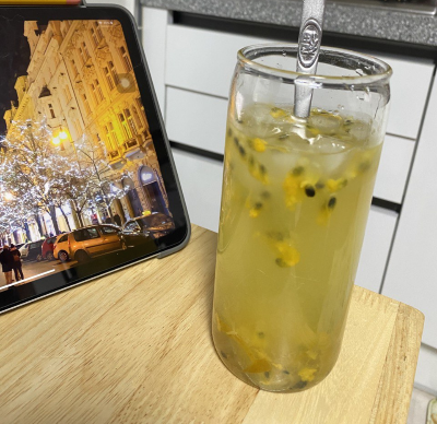 - 탄산수에 먹어야 맛인데, 아쉬운대로 이렇게라도 먹었다. (유자차 + 패션프루츠)